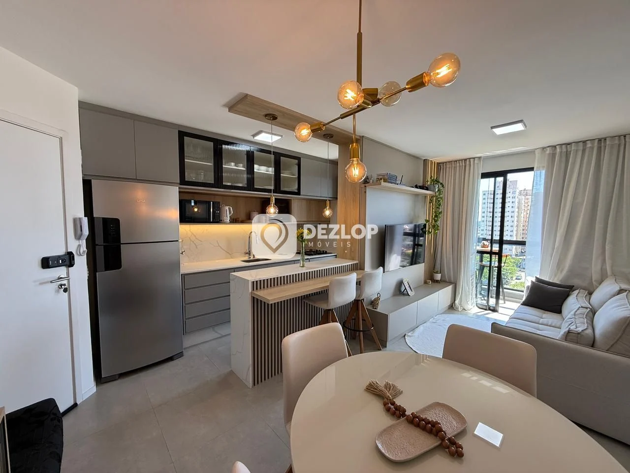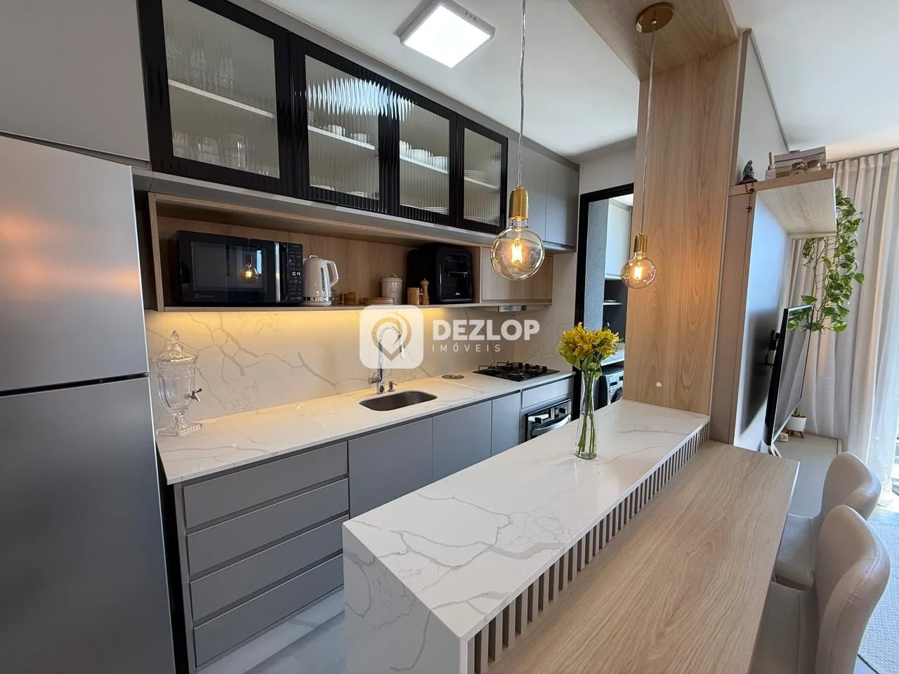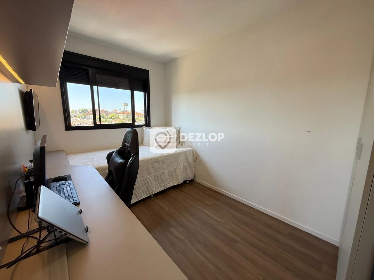 Ao adentrar no apartamento, você é recebido por um ambiente iluminado e bem distribuído. Os pisos em laminado e porcelanato conferem elegância e durabilidade a todos os espaços. A cozinha, equipada com armários planejados e um armário na área de serviço, facilita a organização e o preparo de refeições deliciosas. A sala de estar, integrada à sala de jantar, proporciona um espaço amplo e convidativo para momentos de convívio e relaxamento. A varanda fechada com vidro oferece um ambiente climatizado e com excelente vista panorâmica para apreciar a paisagem circundante. A lavanderia, com área de serviço dedicada, garante ainda mais comodidade no dia a dia. A janela grande permite a entrada de luz natural, tornando o ambiente mais agradável e arejado.