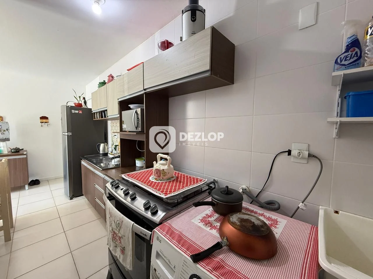 A distribuição interna otimiza o espaço, com uma sala de estar integrada à sala de jantar, criando um ambiente amplo e acolhedor, perfeito para momentos de convívio com a família e amigos. A cozinha, planejada para facilitar o preparo das refeições, possui espaço para organização e funcionalidade. Uma área de serviço completa o espaço, oferecendo ainda mais comodidade. A lavanderia, com espaço dedicado, facilita as tarefas domésticas.