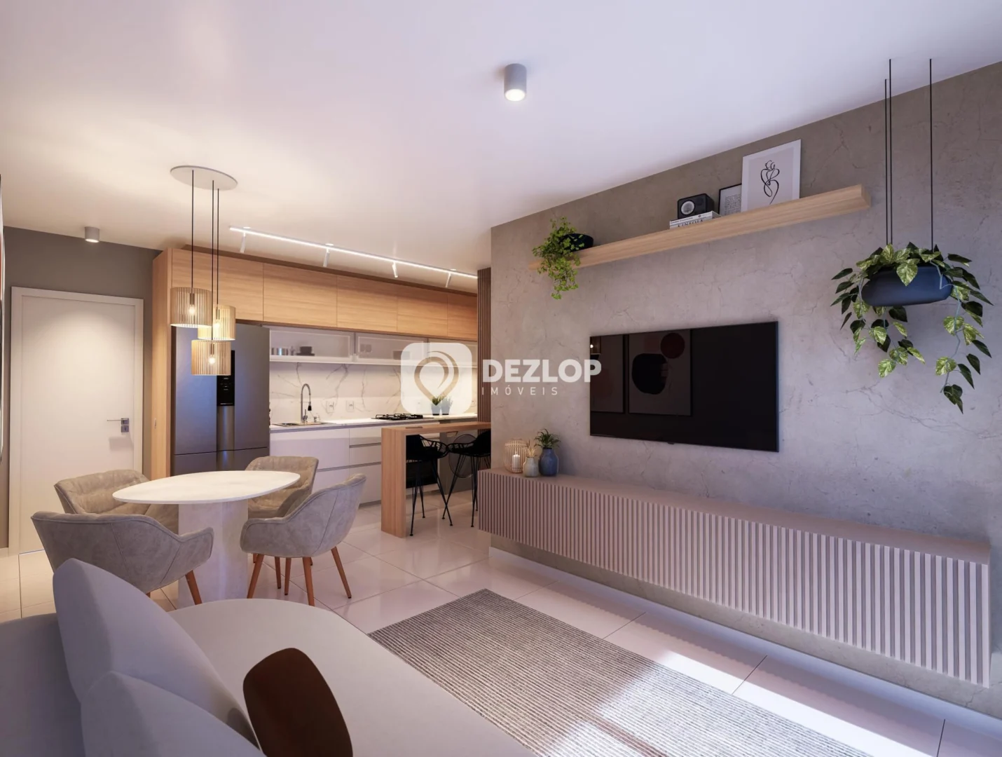 A distribuição inteligente dos espaços resulta em um ambiente funcional e acolhedor. O apartamento conta com um banheiro social, além da suíte, garantindo a comodidade para o dia a dia. A cozinha, integrada à sala de estar e sala de jantar, cria um espaço social amplo e perfeito para receber amigos e familiares. A lavanderia, estrategicamente posicionada, facilita a organização da casa. O piso em porcelanato confere elegância e durabilidade a todos os ambientes, além de facilitar a limpeza.