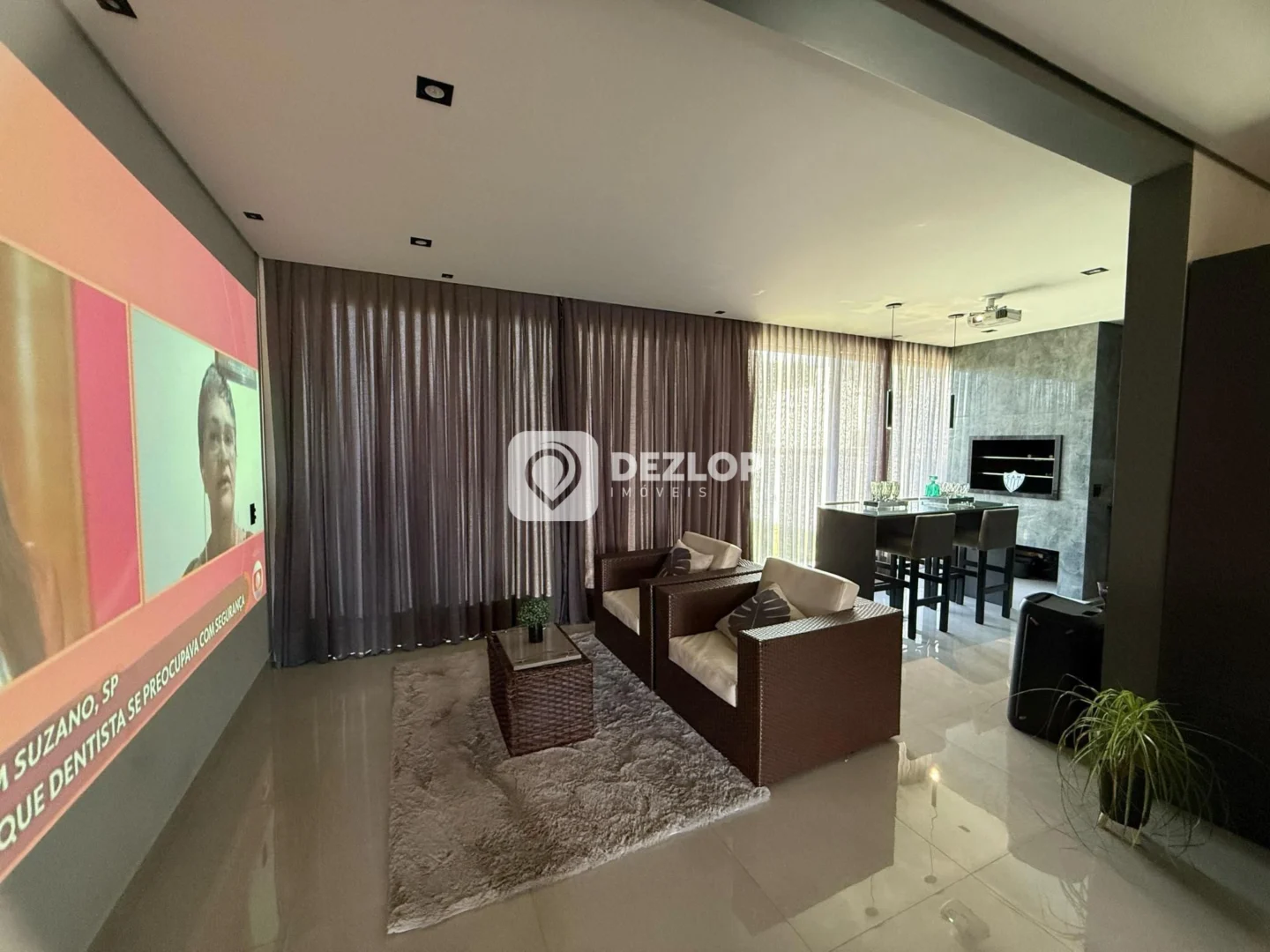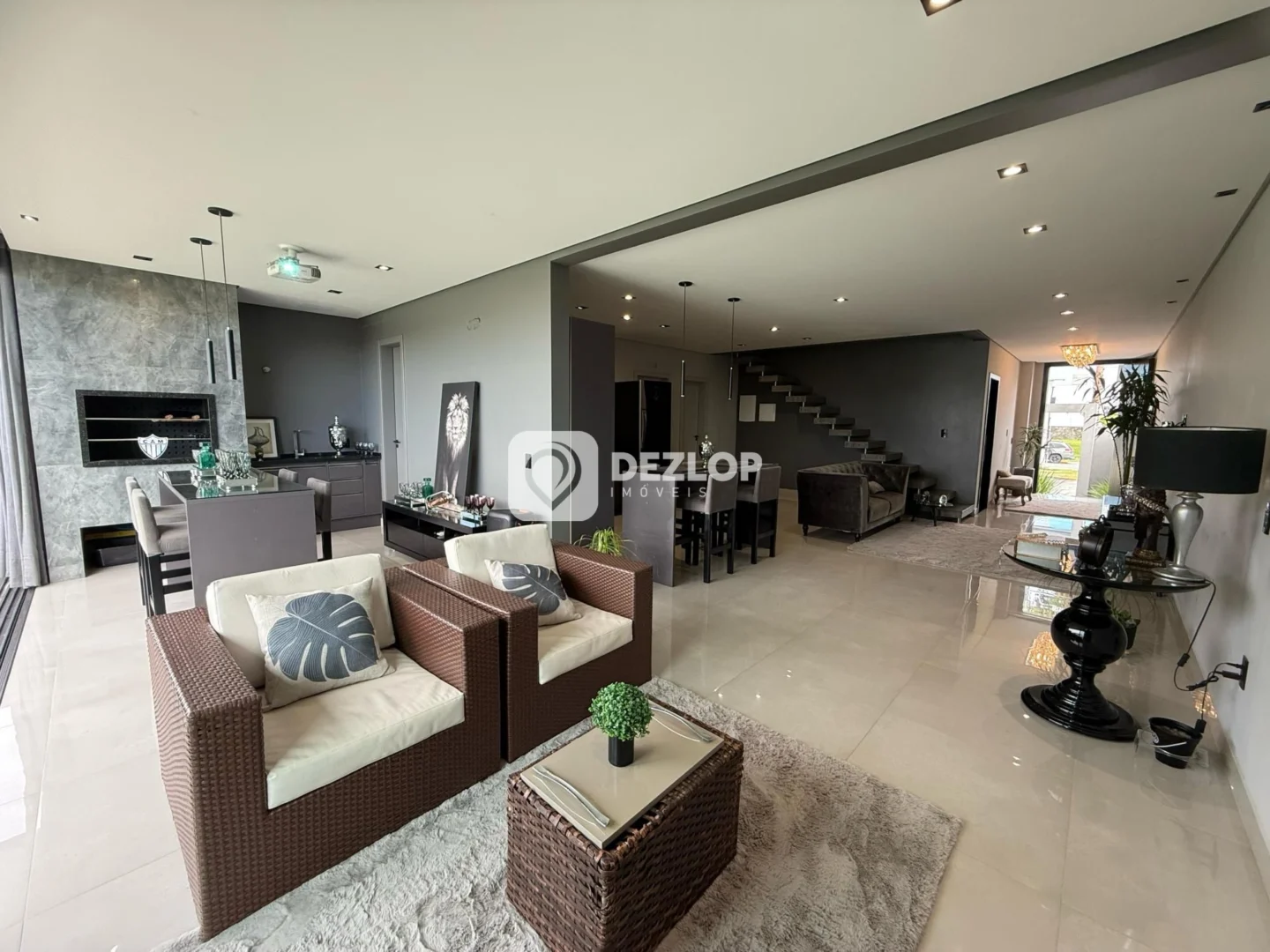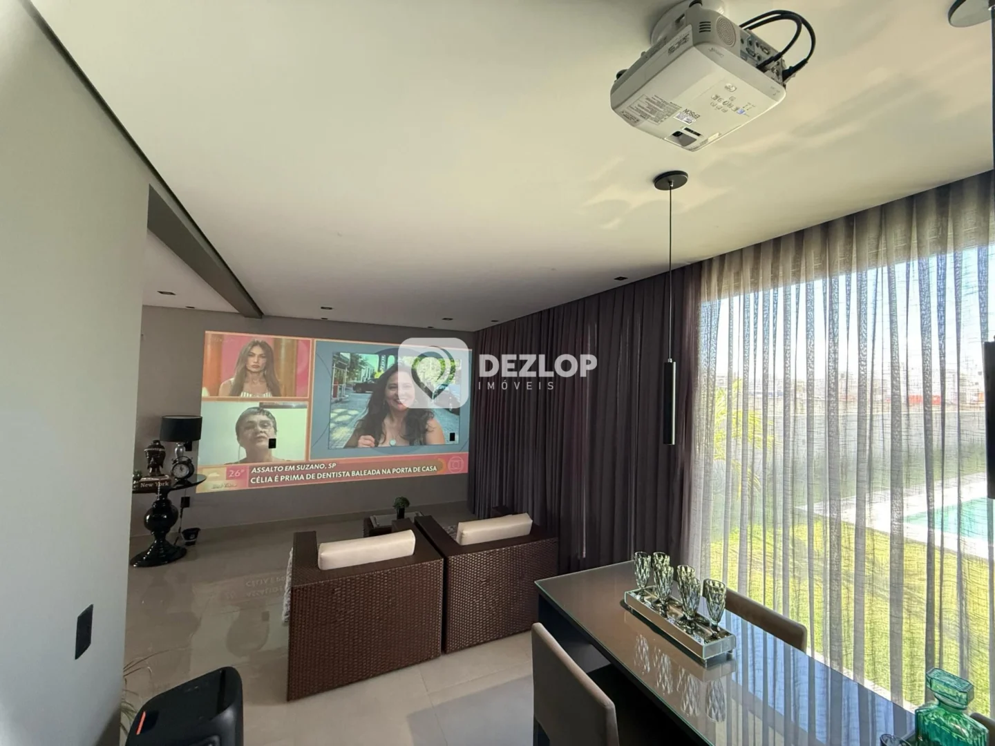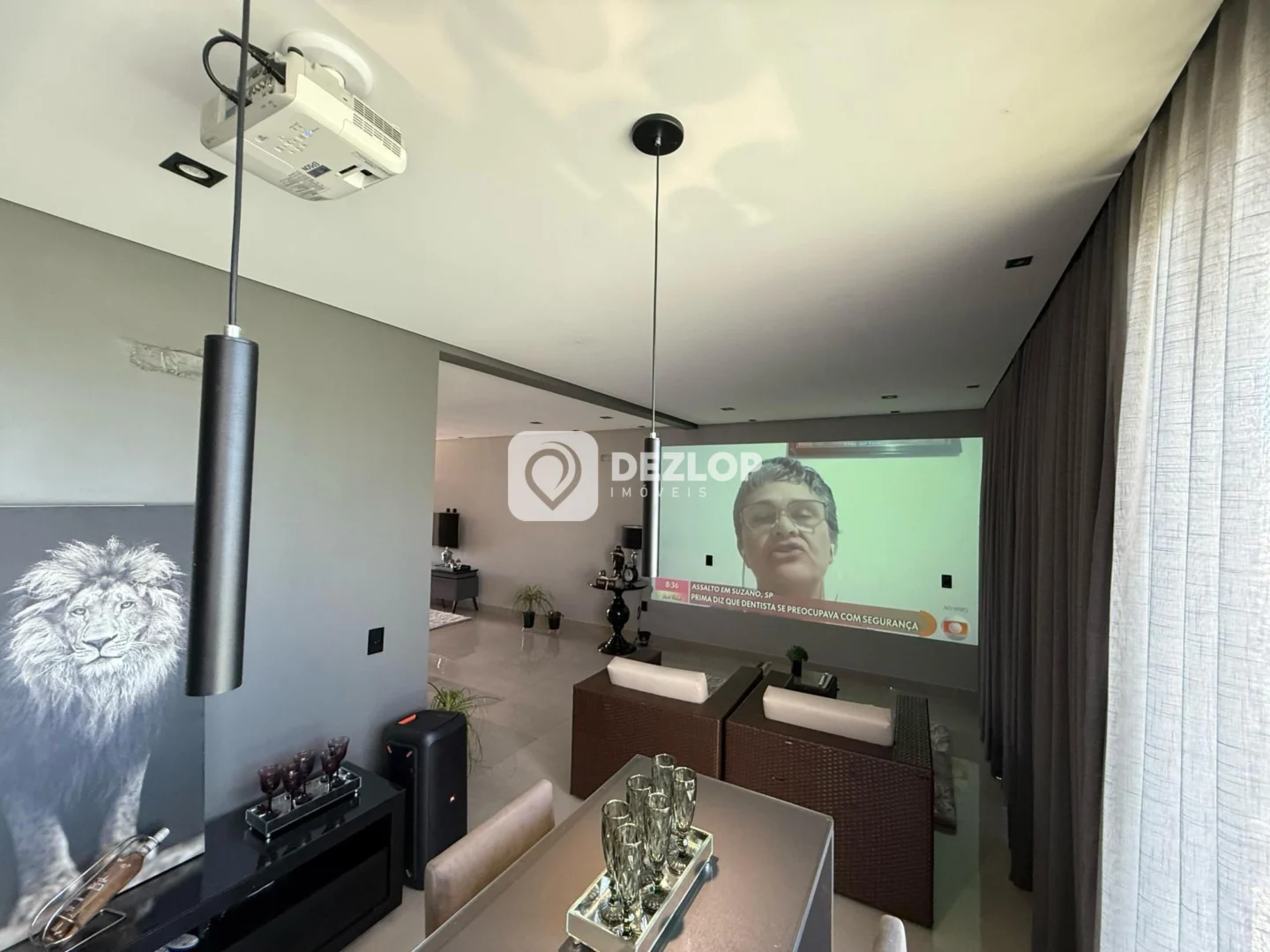 O piso em porcelanato confere beleza e durabilidade a todos os ambientes, facilitando a limpeza e proporcionando um toque de requinte. A casa foi pensada para atender às necessidades modernas, com um home office para quem trabalha em casa, um hobby box para guardar objetos e equipamentos, e uma escada que conecta os diferentes níveis da propriedade. A presença de uma sacada e um terraço permitem desfrutar de momentos agradáveis ao ar livre, com a brisa e a vista panorâmica. Para os amantes de filmes, a casa conta com uma sala de cinema, proporcionando momentos de entretenimento em família. A área de serviço e a lavanderia facilitam as tarefas domésticas, enquanto o banheiro auxiliar oferece mais comodidade.