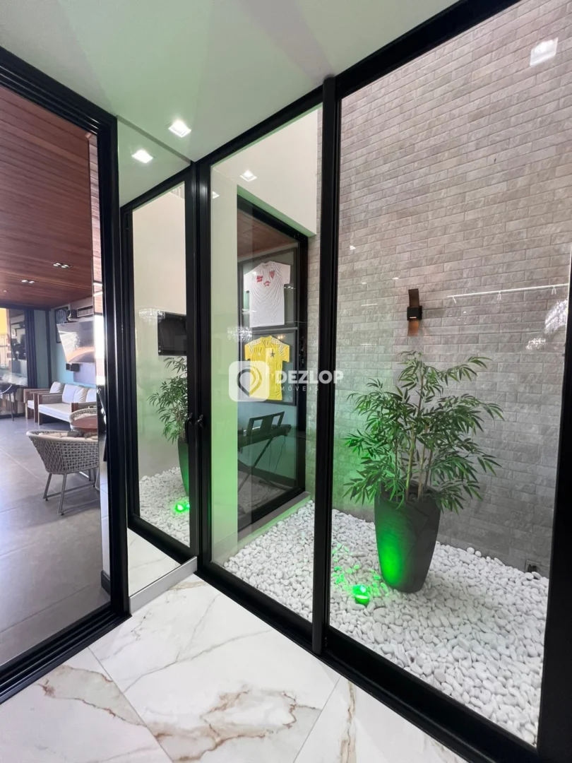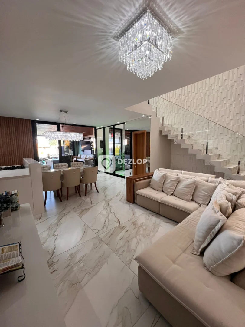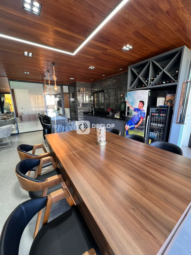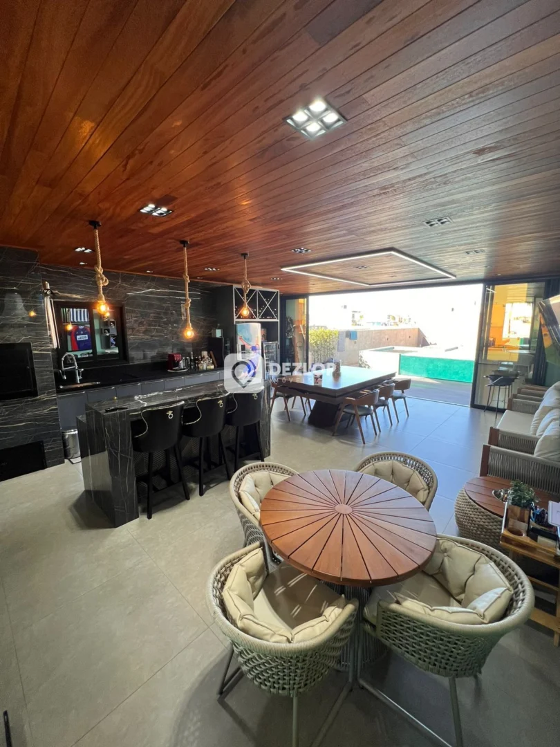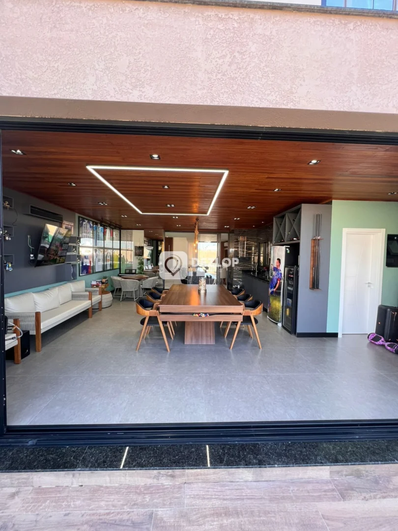 A casa conta com 4 amplas vagas de garagem, ideais para acomodar veículos e visitantes. O design funcional distribui os espaços de forma inteligente, incluindo um escritório para trabalho ou estudo, uma sala de estar aconchegante, perfeita para momentos de convívio, e uma cozinha grande, equipada com móveis planejados e preparada para receber uma cozinha gourmet, que agrega modernidade e sofisticação ao espaço. A presença de armários embutidos, tanto na cozinha quanto em outros cômodos, otimiza o armazenamento e proporciona organização.