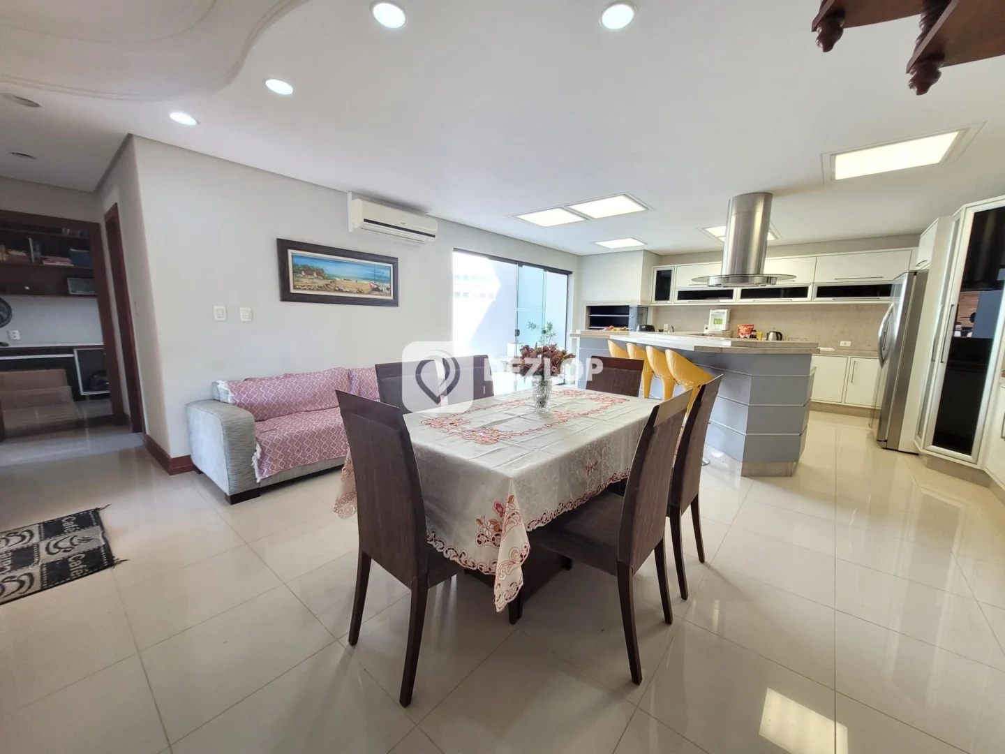 Com uma área privativa de 457,41 metros quadrados, a casa oferece um amplo espaço para lazer e convívio. O piso em porcelanato confere elegância e durabilidade a todos os ambientes, facilitando a limpeza e a manutenção. O imóvel se apresenta usado, conservado e pronto para ser habitado, permitindo que os novos proprietários desfrutem de todas as suas qualidades desde o primeiro dia.
