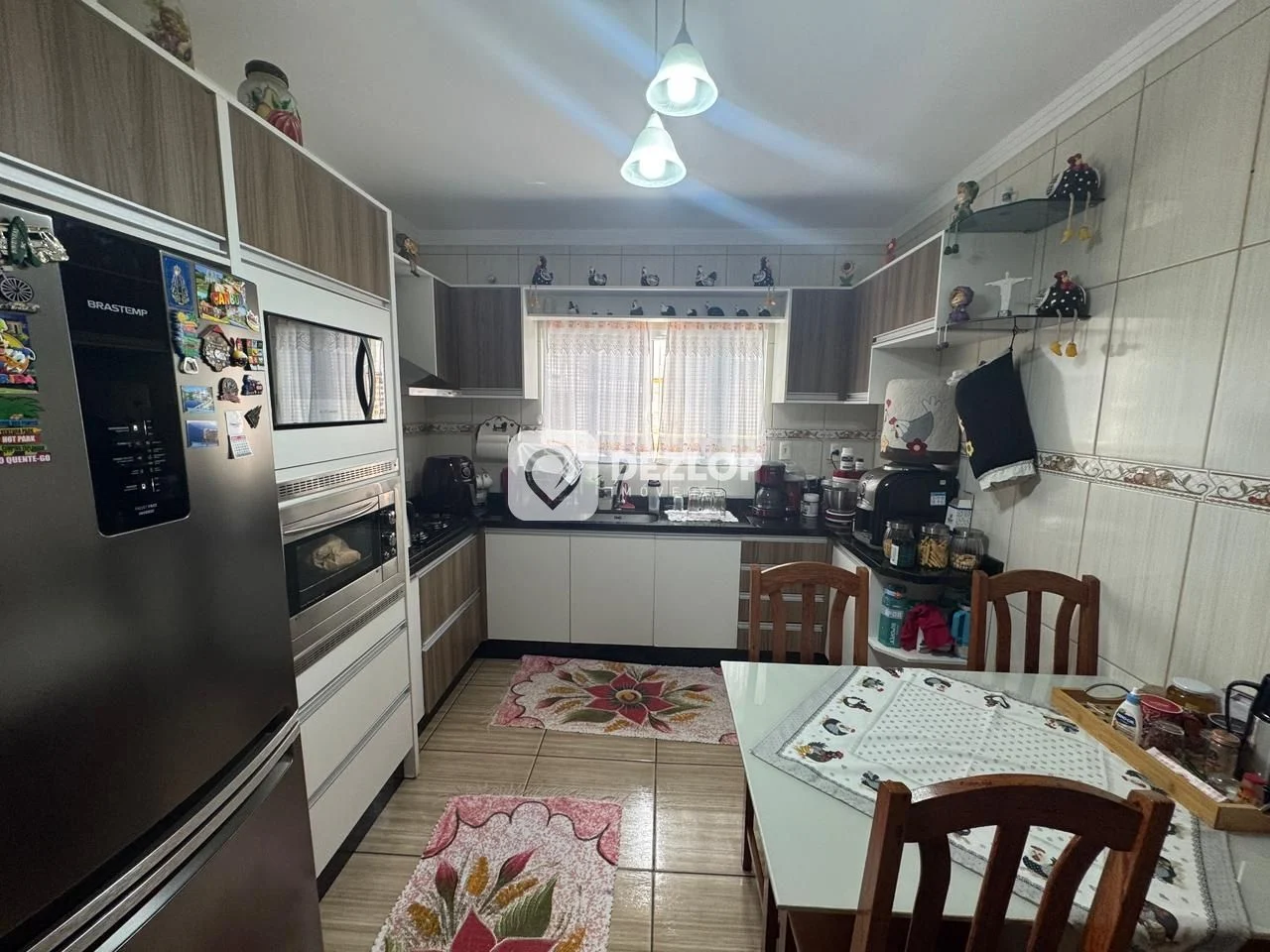 A distribuição interna é inteligente, com 3 banheiros no total, atendendo às necessidades do dia a dia com comodidade. A cozinha, espaçosa e bem iluminada, conta com um design moderno e funcional, com cozinha gourmet integrada, permitindo o preparo de refeições deliciosas para compartilhar com amigos e familiares. A presença de móveis planejados otimiza o espaço e oferece soluções inteligentes para armazenamento. A cozinha grande é perfeita para quem aprecia culinária e busca um ambiente amplo para trabalhar. A casa ainda dispõe de uma cozinha tradicional, lavanderia para maior praticidade, e uma sala de estar aconchegante, ideal para momentos de relaxamento e convívio.