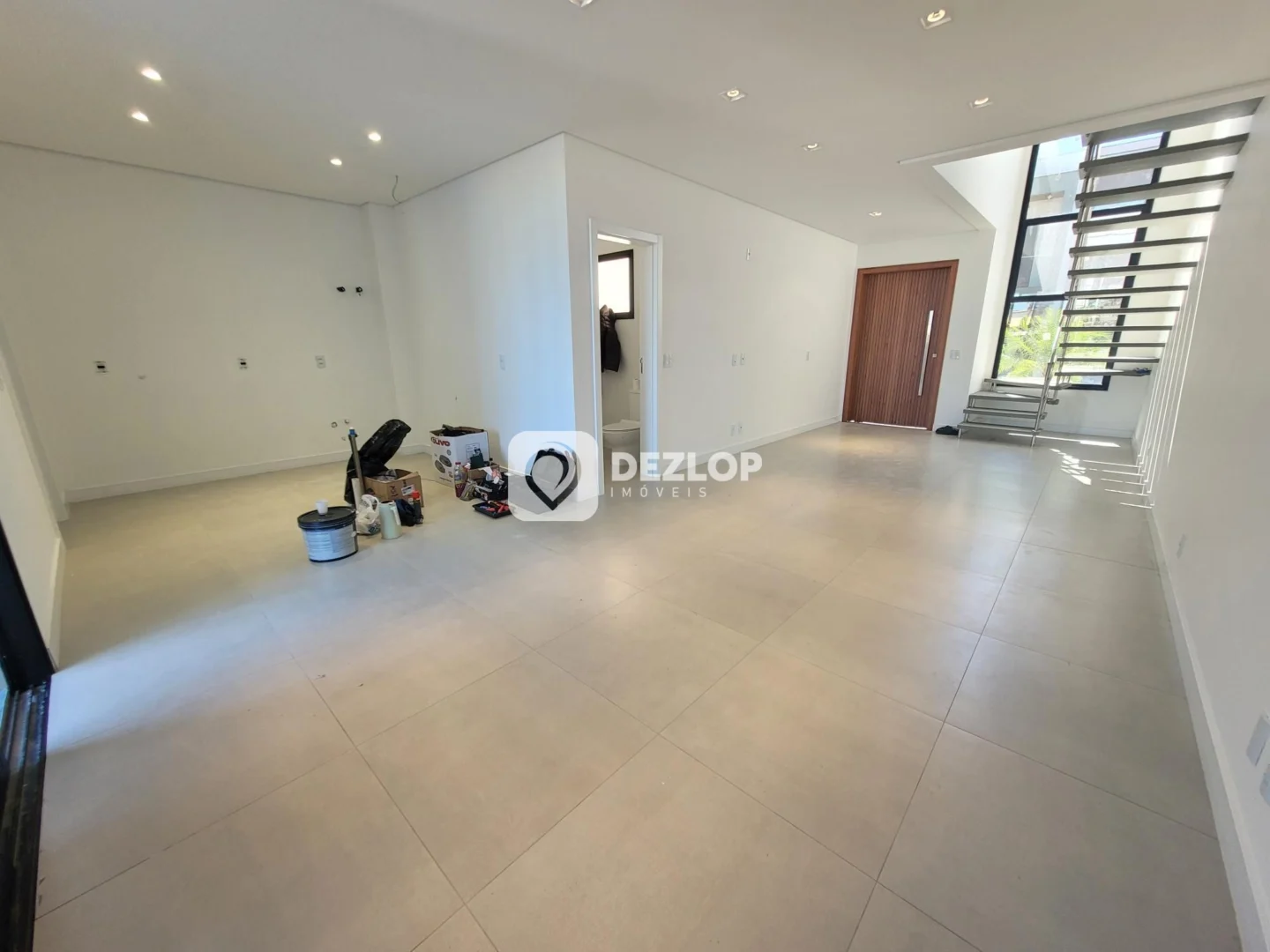 O projeto arquitetônico privilegiou a integração de ambientes, com uma sala de estar e sala de jantar que se conectam, criando um espaço amplo e convidativo para momentos de convívio. Uma sala de almoço adjacente à cozinha amplia ainda mais as opções de uso do espaço, possibilitando refeições mais informais ou celebrações com amigos e familiares. A cozinha, bem distribuída, conta com espaço para instalação de armários e bancadas, facilitando a organização e o preparo das refeições. Um lavabo oferece maior comodidade aos visitantes.