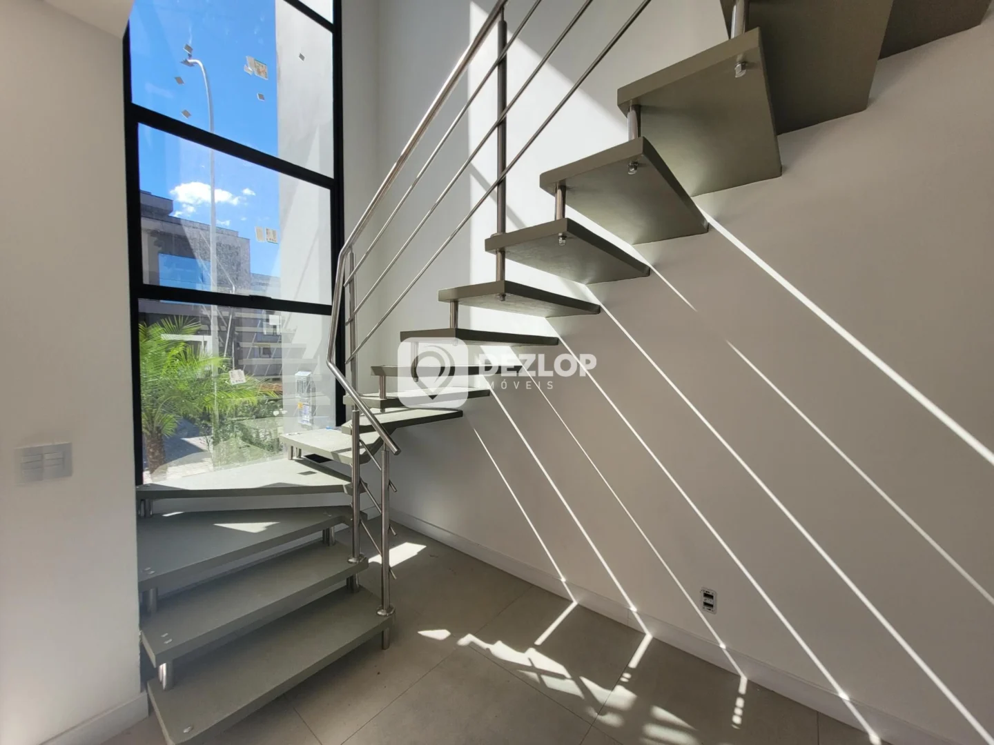A casa dispõe de uma área de serviço completa, com espaço para máquinas de lavar e secar, além de facilitar a organização de roupas e utensílios domésticos. Uma edícula, com acesso direto ao quintal, pode ser utilizada como espaço de lazer, escritório ou para atividades diversas, adaptando-se às necessidades de cada família. A presença de uma escada interna conecta os diferentes níveis da casa, proporcionando fluidez e amplitude aos ambientes. O piso, composto por revestimentos em porcelanato e laminado, confere elegância e durabilidade a todos os cômodos.
