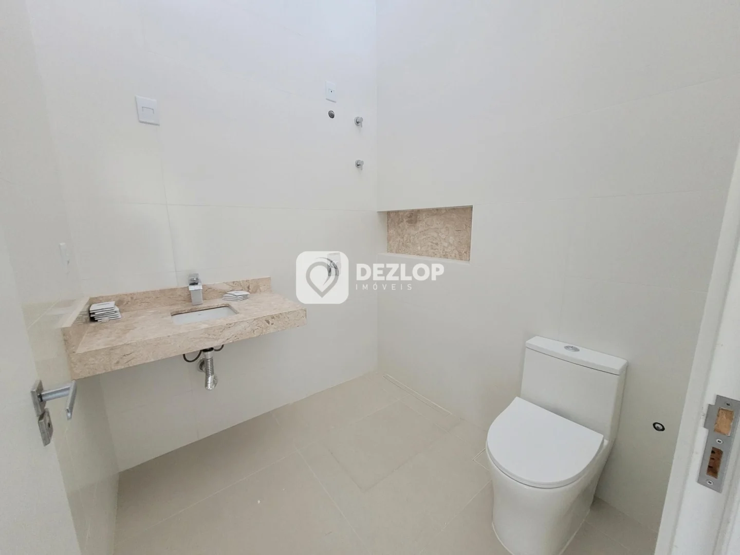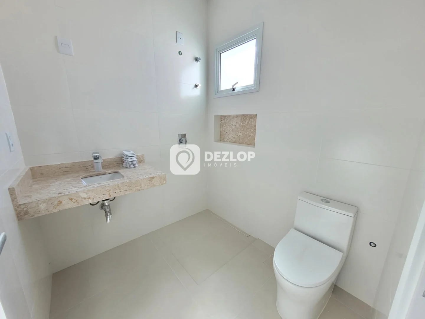 A casa possui 3 quartos, sendo 3 suítes, proporcionando privacidade e comodidade para todos os moradores. Os banheiros são finamente decorados, com atenção aos detalhes e utilizando materiais de alta qualidade. Além das suítes, há um banheiro social que atende às áreas comuns da residência.